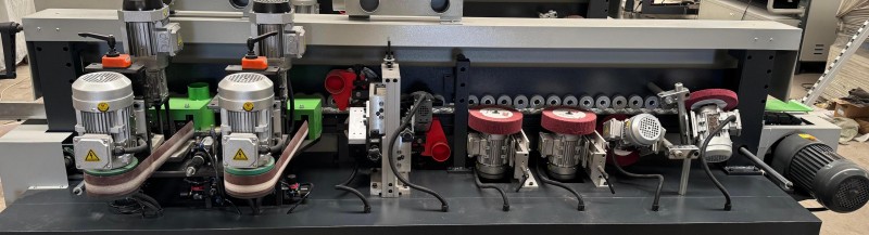 This industrial-grade machine integrates sanding-polishing dual processes for wood board edges. Equipped with an adjustable abrasive belt (80-600 grit) and up /down edge trimming function, it performs deburring, primer leveling, and mirror polishing in one pass. The motor driven sanding belt auto-lifting system adapts to 5–180mm thick boards, enabling seamless edge processing for profiled workpieces (e.g., moldings, frames). Frequency-converted speed adjustment (5–20m/min), Machine accept customized.